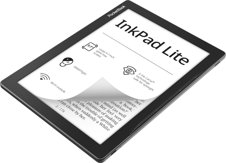 PocketBook este încântat să anunțe startul vânzărilor pentru cel mai așteptat model - PocketBook InkPad Lite e-reader. Dispozitivul are un ecran mare de 9,7 inci E Ink Carta™, o lumină frontală SMARTlight și butoane de comandă laterale. Toate acestea vor constitui o alegere excelentă pentru cei care caută o combinație de preț rezonabil și oportunități excelente de citire.